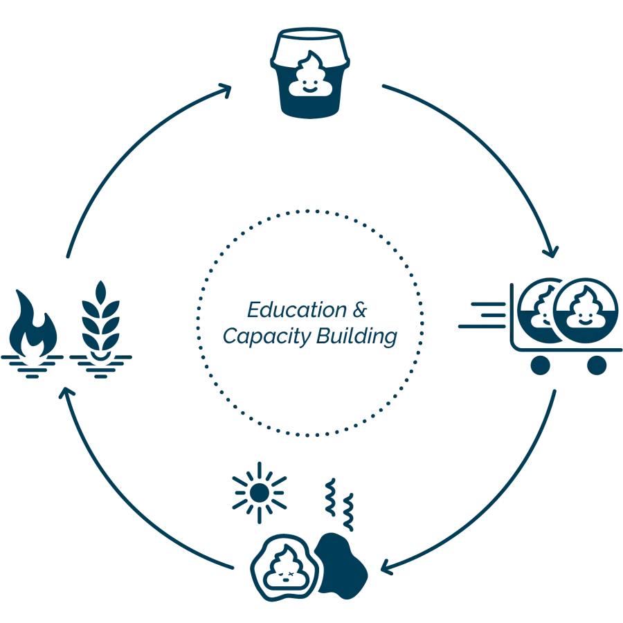 Mosan co-creates culturally appropriate, circular, climate-positive and regenerative systems, through ecological sanitation and innovative waste treatment, which promotes health and wellbeing of the population, avoids contamination and enables the recovery of valuable nutrients and reuse in the agriculture, thus closing nutrient cycles and supporting long-term regeneration.ย